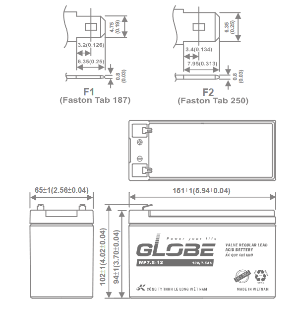 BÌNH ẮC QUY GLOBE 12V-7.5Ah (WP7.5-12)