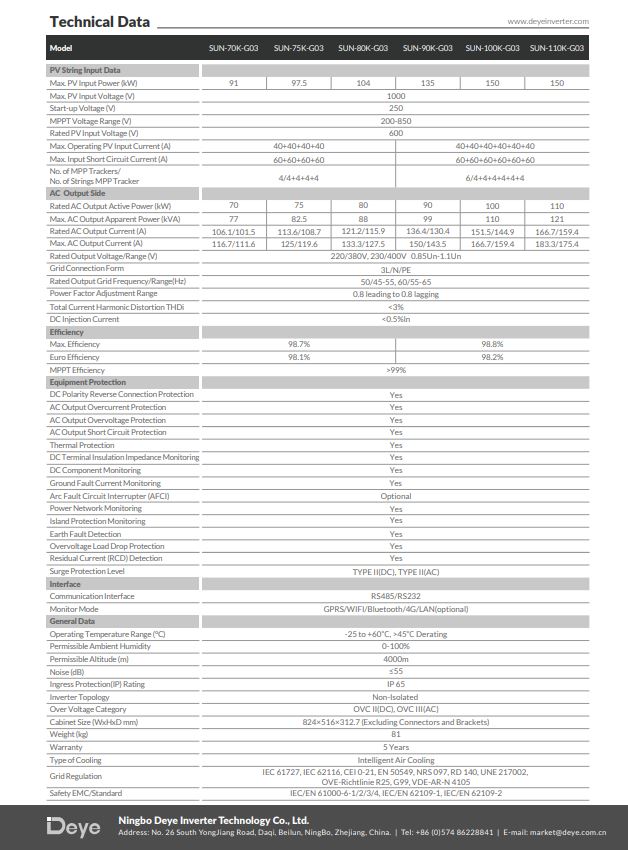 Inverter hòa lưới Deye 110KW 3 pha (SUN-110K-G03)