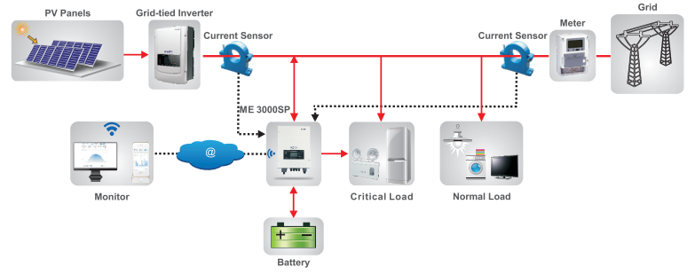 Mô hình đấu nối Inverter hòa lưới có dự trữ Sofar Solar 3KW