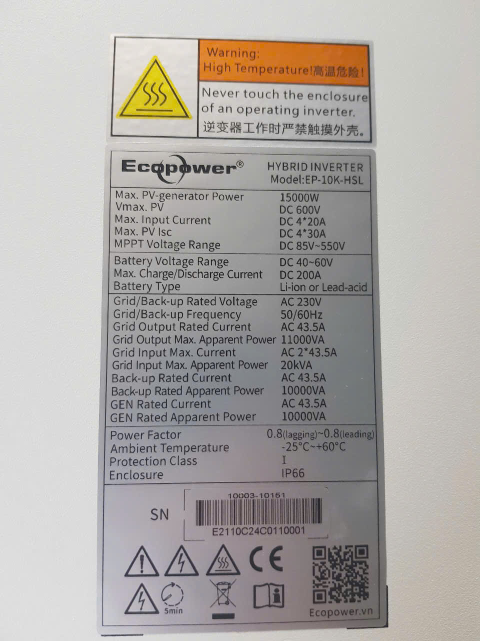 Inverter Hybrid Ecopower 10KW 1 pha (EP-10K-HSL)