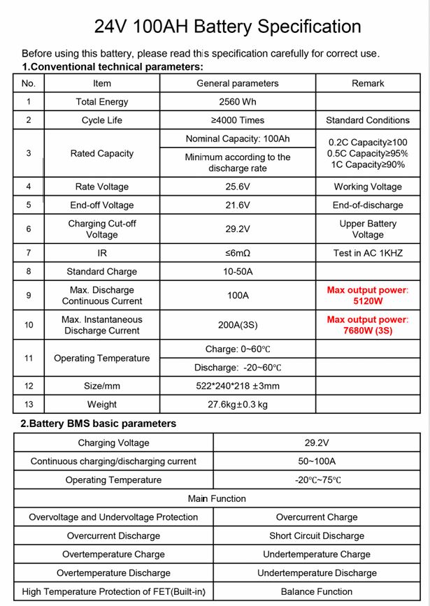 - Dung lượng danh định: 25.6V / 100Ah (tương đương 2.56kWh)